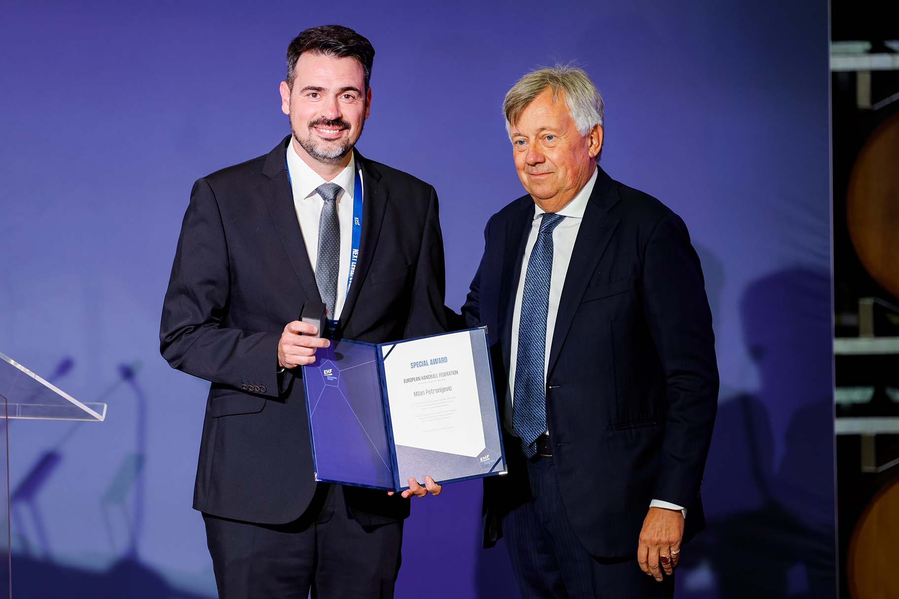 На 17. редовној изборној скупштини Европске рукометне федерације (ЕХФ), одржаној 19. и 20. септембра у Аустрији, професор др Милан Петронијевић свечано је примио специјално признање за свој изузетан рад и допринос развоју рукомета у Европи. Признање му је уручио председник ЕХФ-а, господин Михаел Видерер.